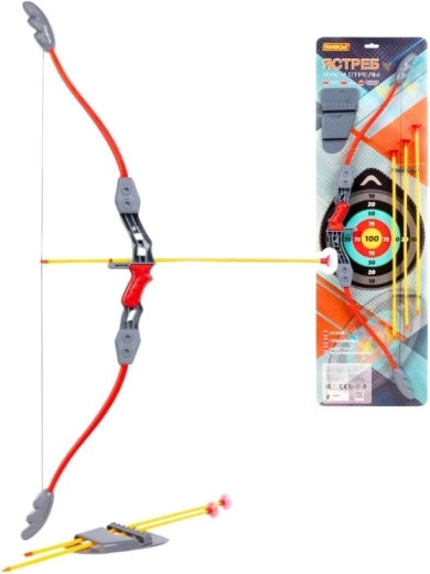 A Hawk gyerek íj biztonságos és magával ragadó játékot kínál a kis íjászat-rajongóknak. A könnyű műanyag kivitel, a kényelmes, formázott markolat és a puha, tapadókorongos nyilak biztonságos játékot tesznek lehetővé beltéren és kültéren egyaránt. A mellékelt kivágható céltábla minden délutánt szórakoztató vetélkedéssé varázsol.