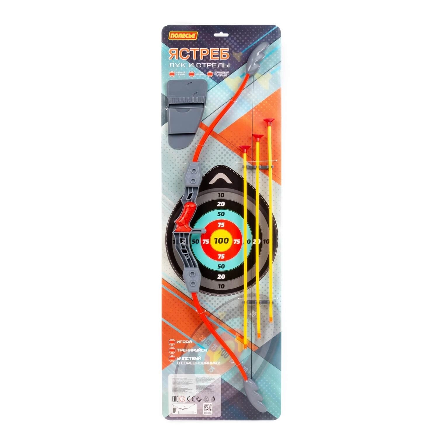 A három, puha tapadókoronggal ellátott nyíl könnyen tapad a sima felületekre, és lehetővé teszi a biztonságos célzást és versengést otthon és a szabadban egyaránt.