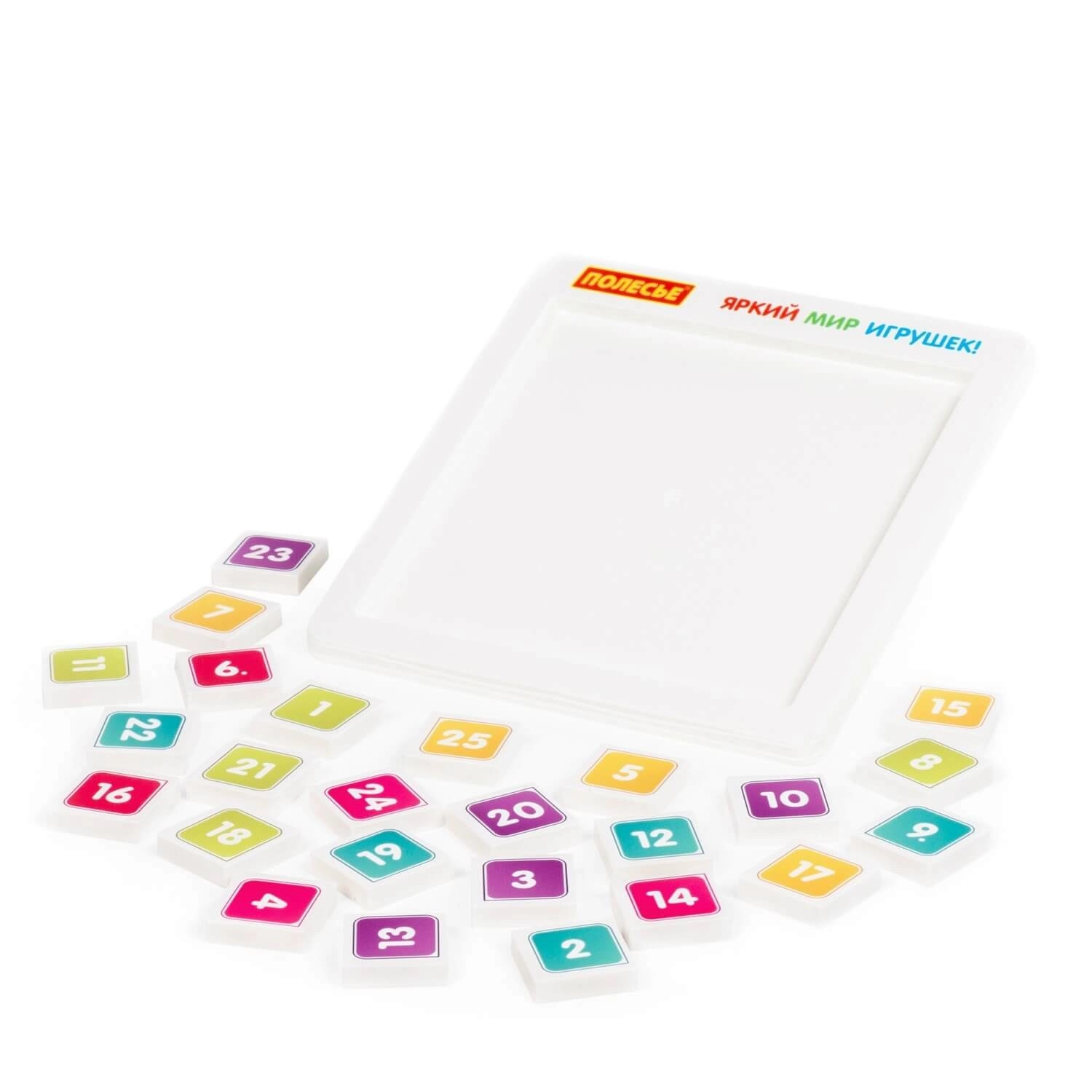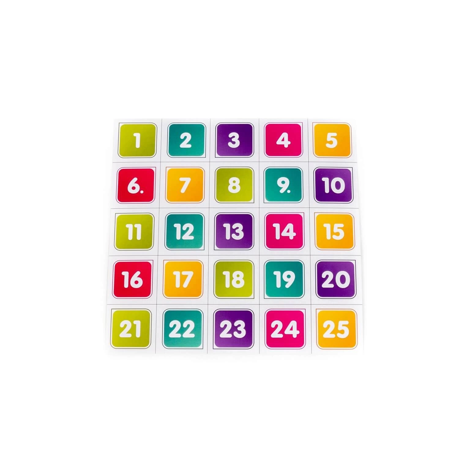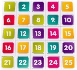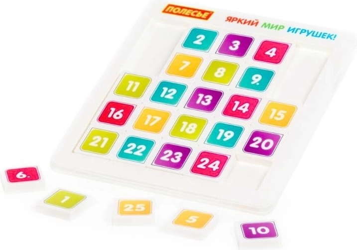 Szórakoztató és oktató jellegű számjáték 25 elemmel, amely a számok növekvő és csökkenő sorrendbe rendezését tanítja az elemek alaplapon történő mozgatásával. Támogatja a logikus gondolkodást, fejleszti a finommotorikát és edzi a koncentrációt. A csomag tartalmaz egy játékváltozatokat bemutató tájékoztatót a még több szórakozásért és gyakorlásért.