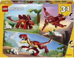 A LEGO Creator 3 az 1-ben Vad dinoszaurusz készlet remek szórakozást és kreativitást kínál gyerekeknek és a dinoszauruszok felnőtt rajongóinak egyaránt. Ugyanabból az elejthalmazból könnyedén átépítheted a valósághű velociraptort nyitható állkapoccsal, a stegoszauruszt mozgatható nyakkal és lábakkal, vagy a pteroszauruszt állítható szárnyakkal. Mindegyik modellt tematikus elemek egészítik ki, mint a dinoszaurusztojás, a koponya és a mellkascsontváz, amelyek izgalmas történeteket és látványos kiállításokat tesznek lehetővé.