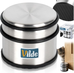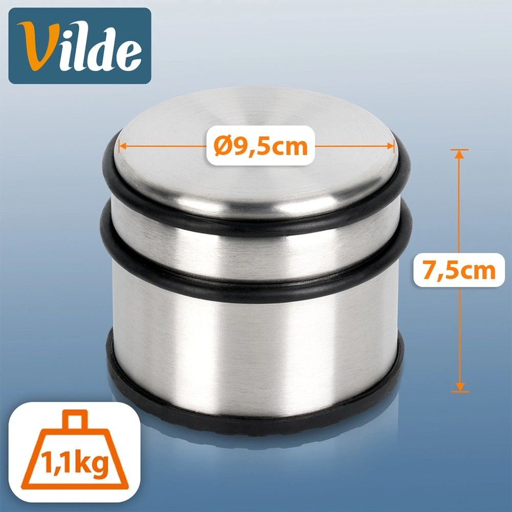 Masszív rozsdamentes acél ajtóütköző 1,1 kg tömeggel, amely megbízhatóan a helyén tartja az ajtót, és védi a falat és a padlót. Kompakt méreteinek (9,5 × 7,5 cm) és modern megjelenésének köszönhetően bármelyik enteriőrbe illik. Csúszásgátló gumitalp és gumigyűrűk csillapítják az ütközéseket és megakadályozzák a karcolásokat. Fúrás és ragasztás nélkül – csak helyezze a padlóra.