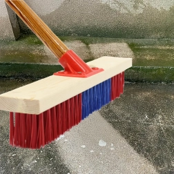 A sűrű és kemény sörték megbirkóznak a lombbal, homokkal és durvább szennyeződésekkel, valamint jól lehúzzák a vizet a burkolatról.