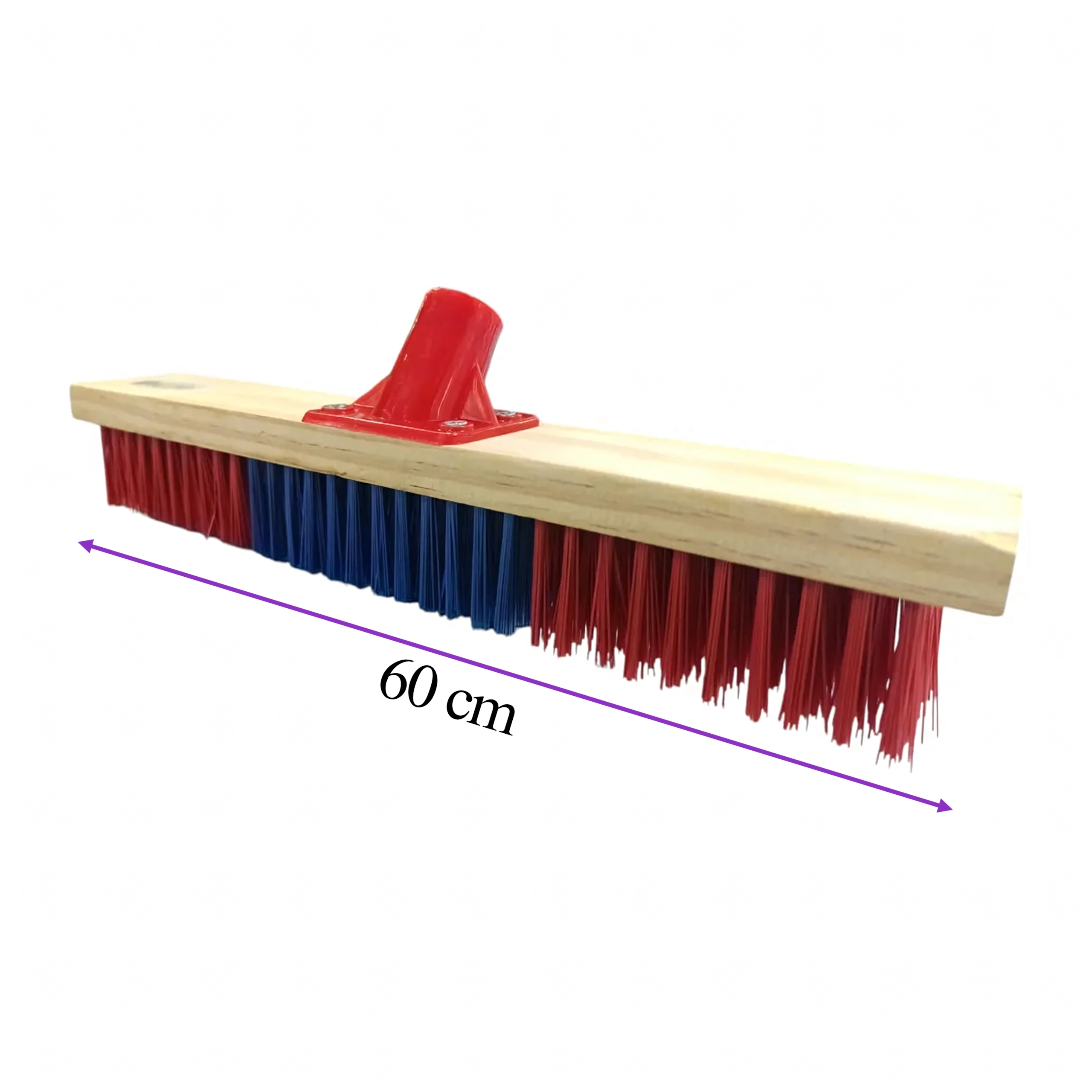 Nagy teljesítményű utcai seprű, 60 cm szélességgel és merev PVC sörtékkel a járdákon, parkolókban, csarnokokban és raktárakban végzett gyors és hatékony sepréshez. Tartós fa fej műanyag tartóval és 22 mm-es menettel, amely stabil és egyszerű nyélrögzítést biztosít. Ideális igényes takarításhoz kültéri és ipari felületeken egyaránt.
