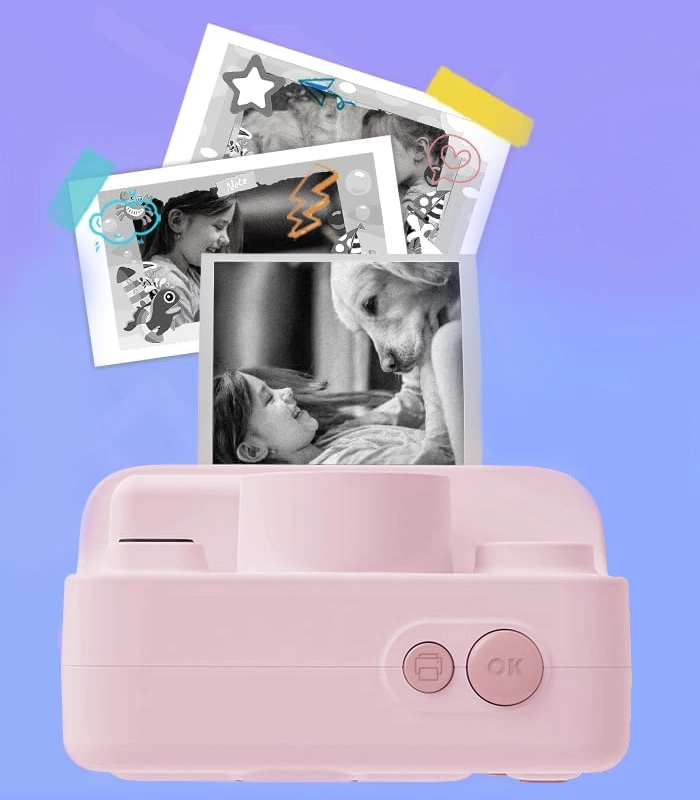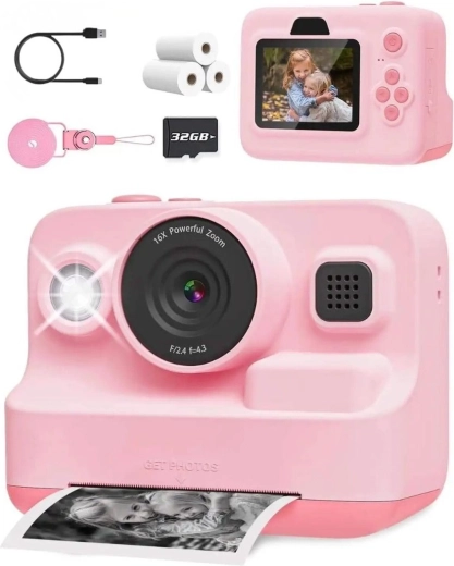 A rózsaszín gyermek fényképezőgép beépített nyomtatóval egyesíti a fotózást, a videózást és a szórakoztató minijátékokat egyetlen eszközben. A hőnyomtatási technológiának köszönhetően a gyerekek azonnal kézhez kapják a nyomatokat – festék és toner nélkül. Nem hiányzik a 2,4" kijelző, 1080P videó, a csomagban 32 GB-os kártya, USB‑C töltés és 3 tekercs papír a hosszú órákon át tartó alkotáshoz. Ideális kis felfedezőknek kirándulásokra, iskolába és családi eseményekre. Azonnali nyomtatás, egyszerű kezelés, strapabíró kivitel és gazdag felszereltség az árban.