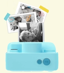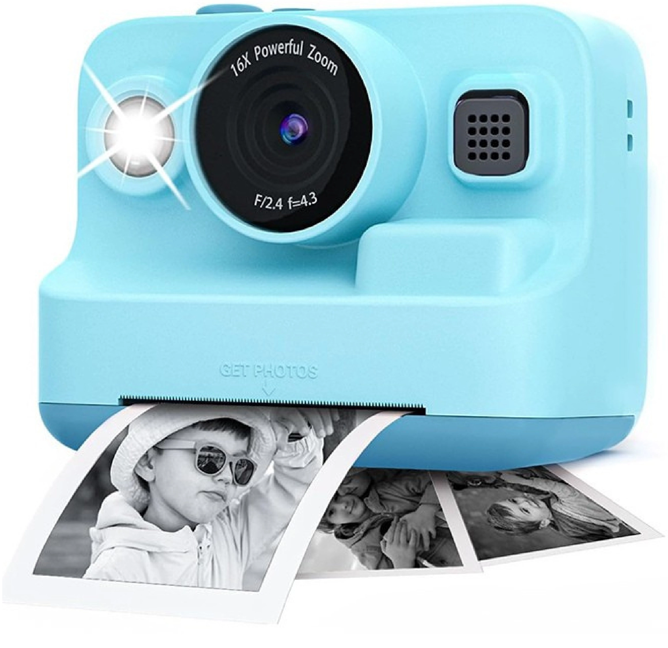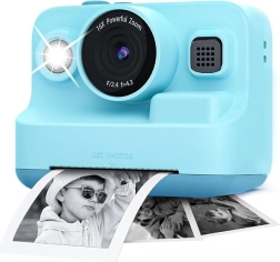 Szórakoztató gyerek fényképezőgép beépített nyomtatóval az azonnali képekhez, 1080P videófelvétellel, 2,4" kijelzővel és beépített játékokkal. Támogatja a microSD-t 32 GB-ig, USB‑C-n keresztül tölthető, és 57 × 30 mm-es hőpapírra nyomtat festék nélkül. A csomagban 3 tekercs papír található – ideális kreatív gyerekeknek utazáshoz és mindennapi kalandokhoz.