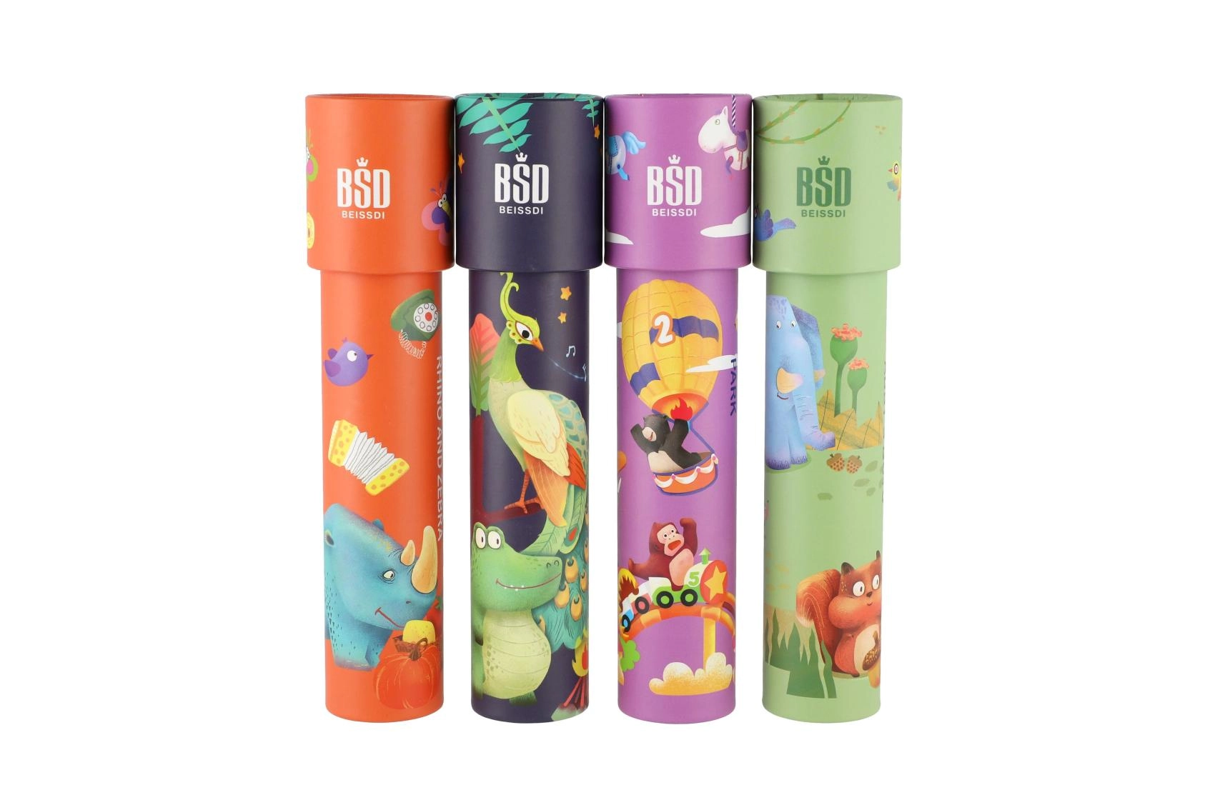 Ez a könnyű és tartós kaleidoszkóp ideális azoknak a gyerekeknek, akik szeretnek új formákat és színeket felfedezni. A felületen lévő színes állatillusztrációk játékos hangulatot teremtenek, így tökéletes apró ajándék vagy jutalom.