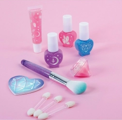 Tartalmaz világítással és tükörrel ellátott kozmetikai tokot, 12 különböző színű szemhéjfestéket, 3 szemhéjecsetet, 2 pirosítót, egy pirosítóecsetet, 3 különböző színű körömlakkot, ajakfényt, ajakbalzsamot, körömreszelőt és útmutatót. 8 éves kortól ajánlott.