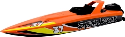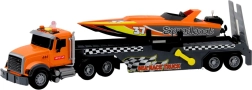 Teherautó motorcsónakkal, fényekkel és hangokkal, narancssárga