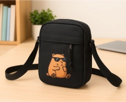 Stílusos táska bájos, szemüveges kapibarával, amely egyedi megjelenést kölcsönöz a gyerek öltözékének, miközben minden apróságot biztonságosan kéznél tart. A három cipzáras zsebnek köszönhetően könnyen rendszerezhető a tartalom, és különválaszthatók a fontos dolgok. A könnyű kialakítás és a strapabíró szövet kényelmes, mindennapi használatot biztosít.