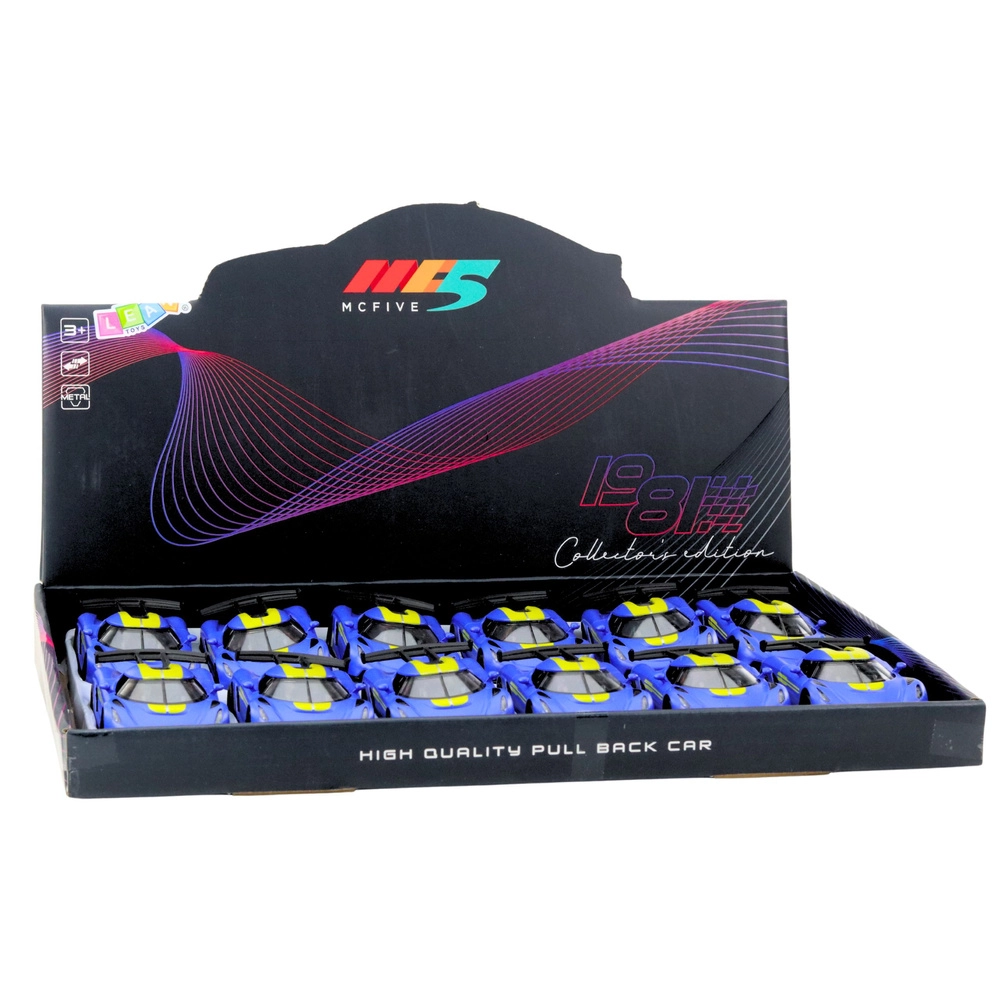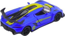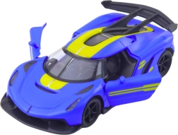 Stílusos fém sportautó 1:32 méretarányban, amely örömet szerez a kis versenyzőknek és a gyűjtőknek egyaránt. Strapabíró fém karosszériát, nyitható ajtókat a még élethűbb játékért és felhúzós (pull-back) meghajtást kínál a fürge száguldáshoz. A kompakt méretek és a modern sportos dizájn kék színben, sárga elemekkel remek választássá teszik mindennapi játékhoz vagy kiállításhoz.