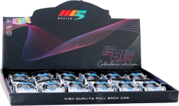 Fedezze fel a kompakt versenyautót, amely strapabíró fém karosszériájával és modern sportos megjelenésével tűnik ki. Elég enyhén hátrahúzni, és a pull-back meghajtásnak köszönhetően előre tör. A nyitható ajtók növelik az autentikusságot, és betekintést engednek a részletes belső térbe.