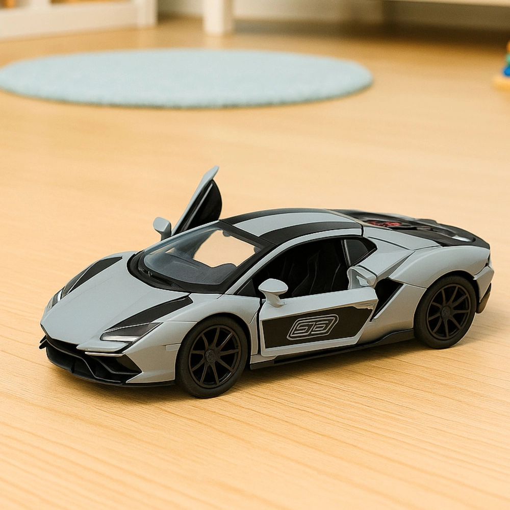 Stílusos, 1:32 méretarányú fém versenyautó, amely a gyors kerekek kicsi és nagy rajongóinak egyaránt örömet szerez. Erős fém karosszériát, nyitható ajtókat a még valósághűbb játékhoz és izgalmas hátrahúzós (pull-back) meghajtást kínál: csak húzd hátra, engedd el, és már indulhat is a verseny. A kompakt méretek és a sportos dizájn szürke színnel és fekete részletekkel tökéletes játékká és gyűjtői darabbá teszik.