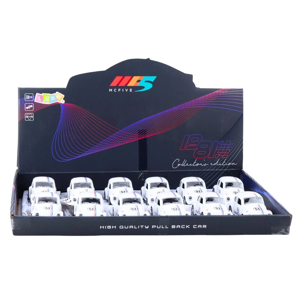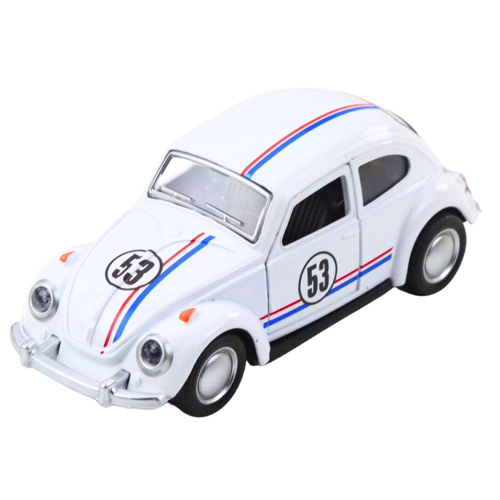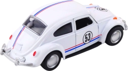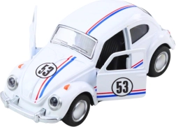 Stílusos, a legendás „bogár” által ihletett fém modell 1:32 méretarányban, amely a gyerekeket és a gyűjtőket egyaránt lenyűgözi. Fém karosszériát, izgalmas felhúzós meghajtást a gyors száguldáshoz, nyitható ajtókat és részletgazdag kidolgozást kínál elegáns fehér színben.