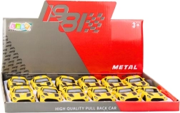 Fém versenyautó 1:43 felhúzós meghajtással és nyitható ajtókkal – sárga