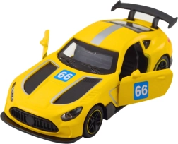 Kompakt fém versenyautó 1:43 méretarányban, amely örömet szerez gyerekeknek és gyűjtőknek egyaránt. Fém karosszériát, nyitható ajtókat és felhúzós (pull-back) meghajtást kínál a dinamikus száguldáshoz. Sportos dizájnjának és strapabíró kialakításának köszönhetően ideális mindennapi játékhoz és a gyűjtemény bővítéséhez is.