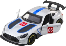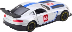 Az ezüst színű 1:43-as versenyautó a motorsport kisebb és nagyobb rajongóinak is örömet okoz. A precíz részletek, sportcsíkok és rajtszámok autentikus megjelenést adnak a modellnek, míg a nyitható ajtók ötletes játékra csábítanak. A visszahúzós (pull-back) meghajtás gyors rajtot biztosít – csak húzd hátra és engedd el.