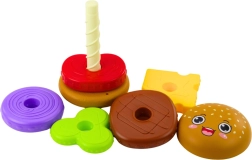 Ez a szórakoztató és fejlesztő játék a hamburger rétegeit utánozza – bucikat, sajtot, salátát és „hús”szeleteket. A gyerekek kedvük szerint alkothatják meg saját „receptjeiket”, építhetnek és újra szétszedhetnek, ezáltal természetes módon erősítik a türelmet, a logikus gondolkodást és a színek és formák vizuális megkülönböztetését.