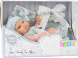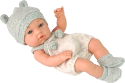 A 18 cm magas, aranyos babababa élethű részleteivel és kellemes, puha anyagával örömet szerez. A mozgatható végtagoknak és fejnek köszönhetően a baba könnyen ültethető és fektethető. Fehér bodyt szürke részletekkel visel, puha, fülecskés sapkával és masnis előkével – ideális a gondoskodó szerepjátékhoz és a fantázia fejlesztéséhez.