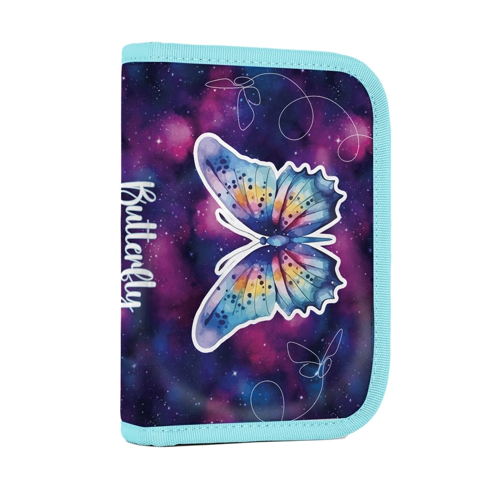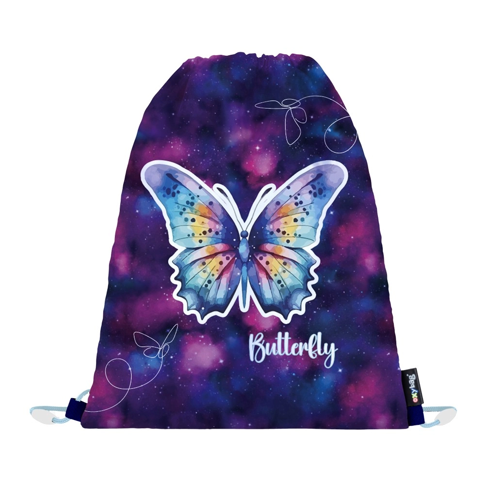 A szettet könnyű tornazsák egészíti ki tornacuccnak vagy váltócipőnek, egyszerű zsinóros összehúzással, valamint átlátható egyszintes tolltartó két füllel és gumipántokkal. A tolltartó belső fülén átlátszó fólia található az órarendnek – minden elem egységes, vonzó pillangó motívummal.