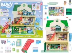 Fedezd fel a szórakozást a Bluey Szupermarket figura készlettel! A gyerekek felfedezhetik az áruház három szintjét, élvezhetik a működő, mozgó mozgólépcsőket, ellátogathatnak a tetőkávézóba, és megtölthetik a bevásárlókocsit különféle „élelmiszerekkel”. A még nagyobb mókáról a interkom vicces hangokkal gondoskodik, amely életre kelti a játékot és serkenti a fantáziát.