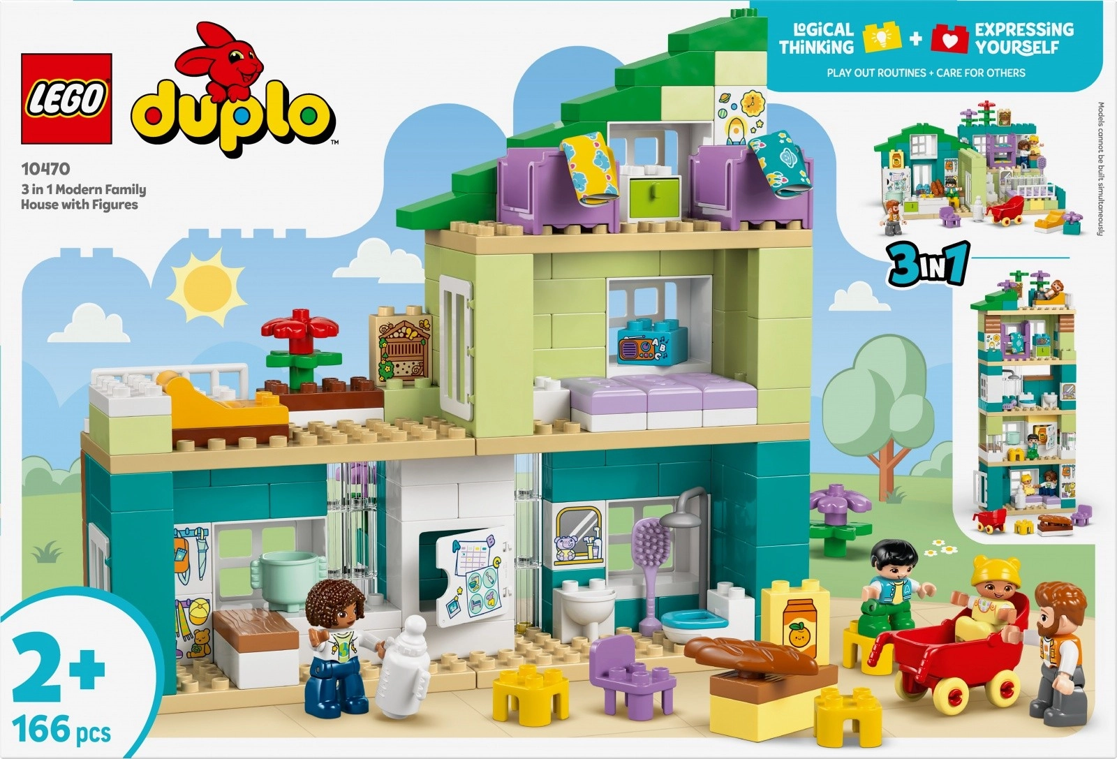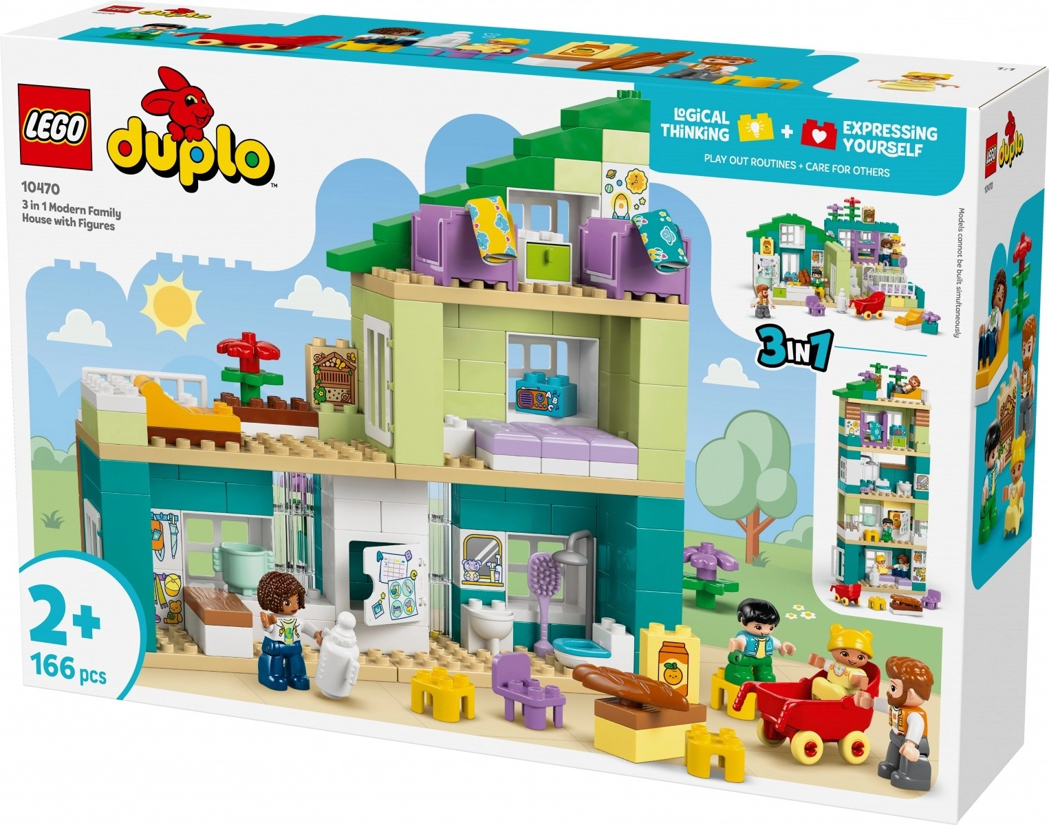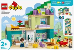 A LEGO DUPLO Modern családi ház 3 az 1-ben végtelen alkotási lehetőséget kínál a gyerekeknek. A három építési változatnak köszönhetően a kis építők mindig új szobabeosztásokat és felfedezni való részleteket találnak. A színes, könnyen megfogható elemek és az átgondolt kiegészítők inspirálják a való életből vett történetek elmesélését.