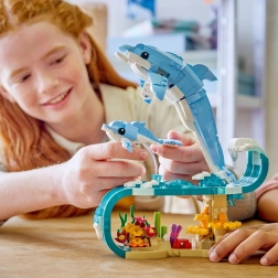 A készlet 542 elemet tartalmaz, és lehetőséget ad gyerekeknek és felnőtt óceánrajongóknak az alkotásra, felfedezésre és kiállításra. Építs felnőtt delfint a kicsinyével, akik kecsesen siklanak a hullámon a színes korallzátony felett, vagy alakítsd át a modellt tengericsikóvá gazdagon díszített talapzattal és mozgatható kagylóval, esetleg rákká medúzával és tengeri flórával.