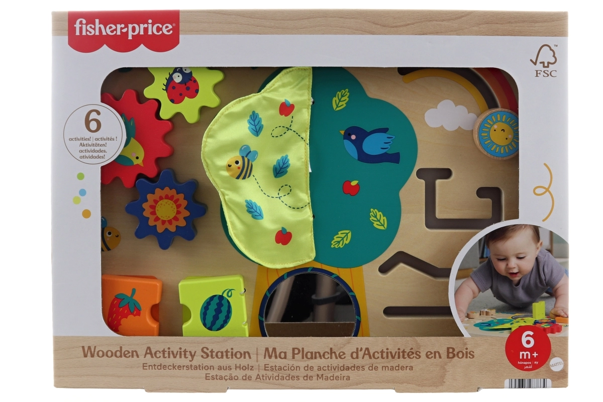 A Fisher-Price Kert interaktív fa játékpanel 6 érzékszervi tevékenységet kínál a legkisebbeknek. A gyermekek fejlesztik finommotorikájukat, érzékelésüket és logikus gondolkodásukat. FSC-tanúsítvánnyal rendelkező fából készült, vízbázisú, nem mérgező festékekkel színezve. 6 hónapos kortól ajánlott.