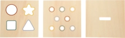 A különféle nyílásokkal ellátott lapok megtanítják a gyermeket felismerni a formákat és színeket, valamint a kézmozdulatokat a feladatokhoz igazítani.