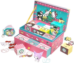 Belül változatos apró játékok és tematikus kiegészítők várnak – kulcstartók, matricák, papír dekorok, mini figurák és más bájos apróságok HELLO KITTY hangulatban. Az egyes kis dobozokba csomagolt tartalom fokozza a mindennapos felfedezés örömét. Az alsó kihúzható fiók további kincseknek ad helyet.