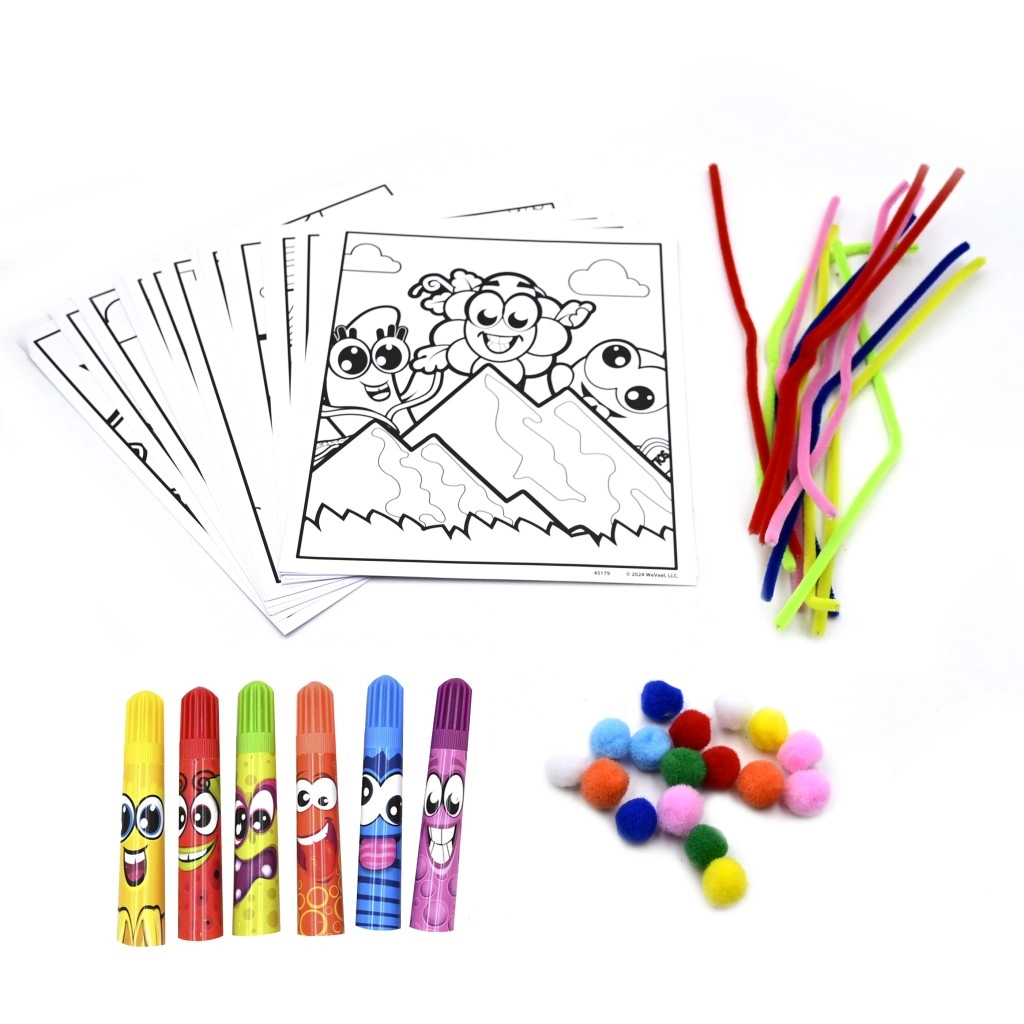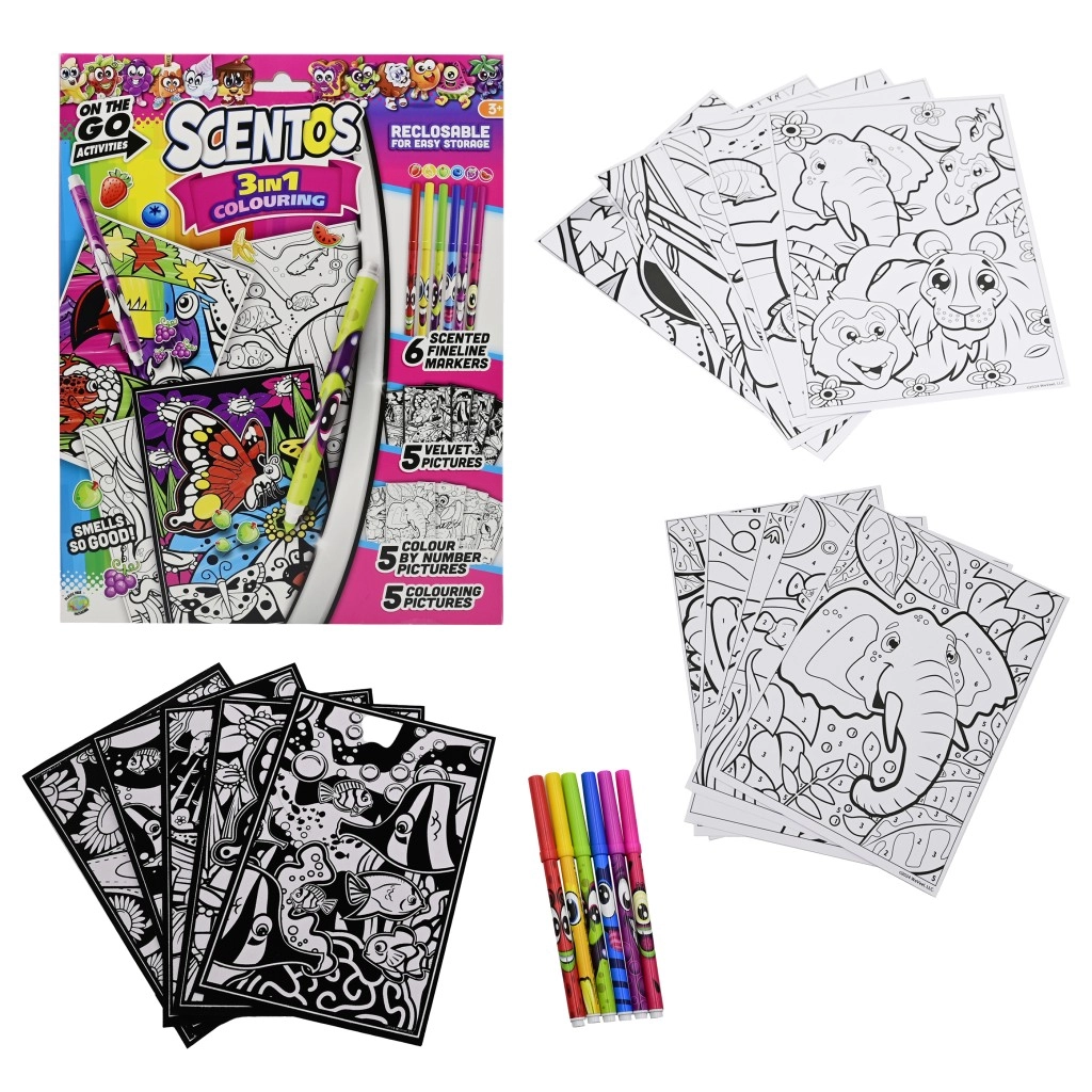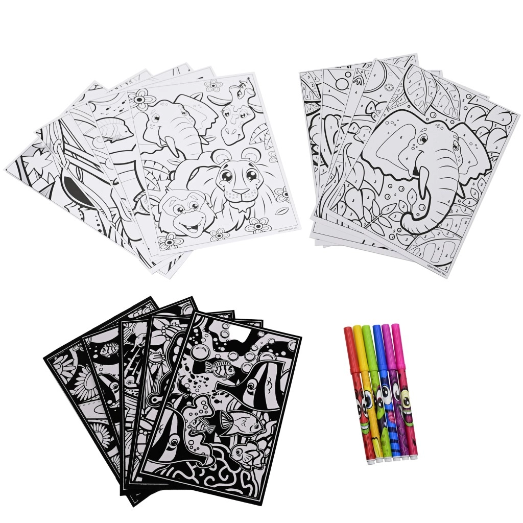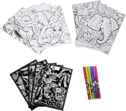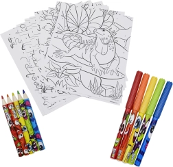 A készlet állatos színezőket, illatos filceket és ceruzákat tartalmaz – ideális a gyors, színes színezéshez otthon és útközben.