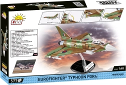 Építse meg az ikonikus, többfeladatú vadászgépet, a EUROFIGHTER TYPHOON FGR4-et a Brit csata ihlette limitált álcafestéssel. A 1:48 méretarányú, 576 kiváló minőségű elemből álló készlet nyitható kabint, mozgatható felületeket, levehető futóművet és átlátszó állványt névtáblával kínál a kiállításhoz. Minden grafika tartós nyomtatás, matrica nélkül.