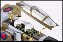 Valósághű funkcióinak és tartós nyomatainak köszönhetően a modell kiállításhoz és interaktív játékhoz egyaránt kiváló. A csomag része a állvány gyűjtői adattáblával és az egyszerűsített RAF pilótafigurák oxigénmaszkkal – ideális kiegészítő a kabinhoz.