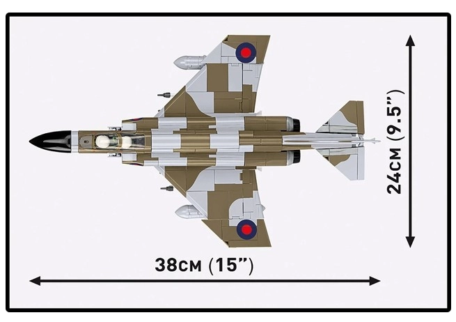 Építse meg a hidegháború brit legendáját! Ez a 728 elemből álló készlet hűen ábrázolja az RAF színeiben repülő F-4M PHANTOM II-t, behúzható futóművel, nyitható kabinnal és autentikus, matrica nélküli tamponnyomással. Nem hiányoznak a mozgatható kormányfelületek, a Skyflash és AIM-9 fegyverzet, pilótafigurák és prezentációs állvány adattáblával.