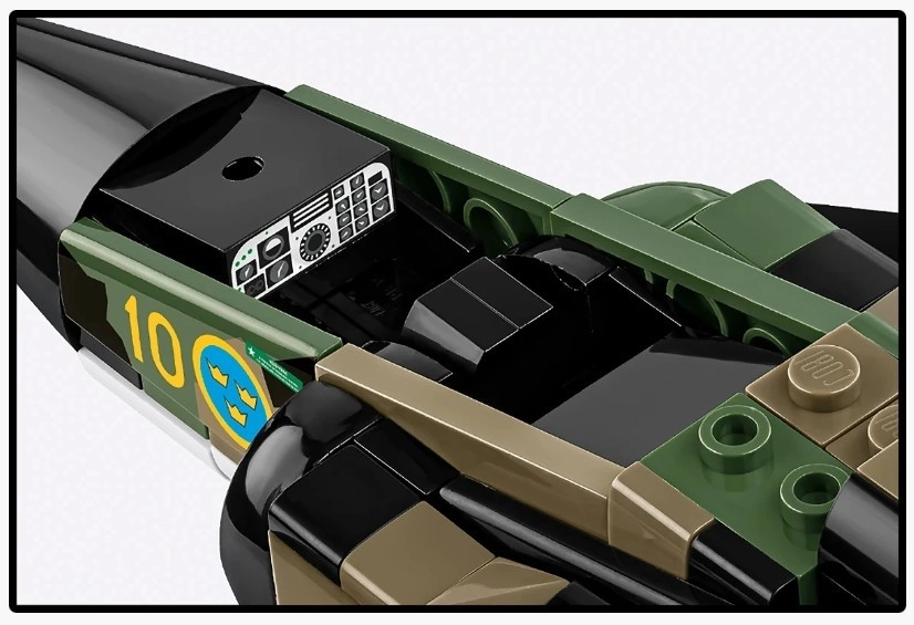 A mozgatható vezérsíkoknak, a forgatható kerekeknek és a gazdag felszereltségnek – beleértve a Bombkapsel 90 típusú kazettás lőszert hordozó konténereket – köszönhetően a modell remek választás játékhoz és kiállításhoz egyaránt. A csomag tartalmaz egy módosított pilótafigurát és egy stabil, állítható állványt névtáblával, a méretarány megjelölésével és svéd zászlóval.