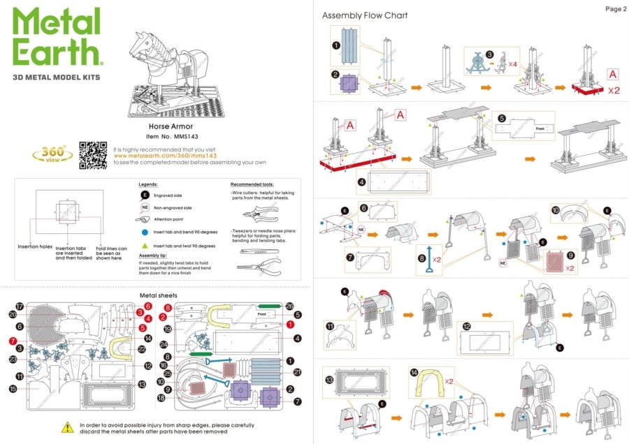 Távolítsa el az alkatrészeket a fémlemezekből (kis csípőfogó ajánlott), illessze őket egymáshoz a pöckös zárak segítségével, és hajlítsa őket vékony fogóval. Lépésről lépésre illessze össze az összes kapcsolatot, és készítse el a valósághű lópáncél modellt.