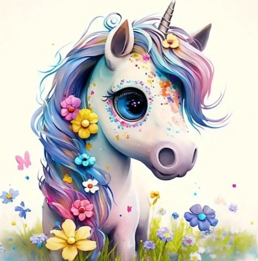 Kreatív gyémántfestő készlet aranyos unikornis motívummal 30 × 40 cm méretben, amely pihentető és szórakoztató alkotást kínál gyermekeknek és felnőtteknek egyaránt. A csomagban minden szükséges eszköz megtalálható – előrenyomtatott vászon, színes kövecskék, applikáló toll, tálca és viasz. Az alkotás egyszerű, nem igényel művészi készségeket, a kész képet pedig keretbe teheti (a keret nem tartozék).