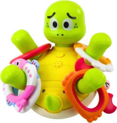 Vízbe helyezve a teknős automatikusan vízsugarakat indít, melyek szórakoztató előadássá varázsolják a fürdést, és fenntartják a gyermek figyelmét.