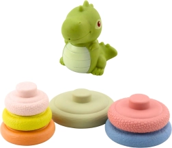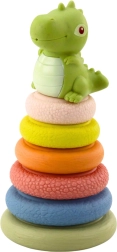 A lekerekített élek és a kellemesen puha anyag biztonságos a kis kezek számára. A dinoszaurusz figurát a csúcsra lehet helyezni, megnyomásra sípol, és újabb felfedezésre ösztönöz. Elegáns csomagolása miatt remek ajándék babáknak.