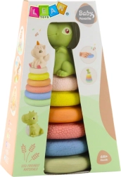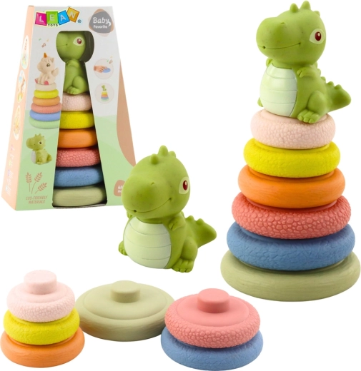 Színes szenzoros piramis aranyos dinóval, ideális 6 hónapos kortól. Különféle textúrákat tartalmaz az érzékelés stimulálására, puha, biztonságos elemekkel, és támogatja a finommotorikát, a kéz–szem koordinációt és a logikus gondolkodást. A csúcsán lévő dinoszaurusz megnyomásra csipogó hangot ad, ami játékra ösztönöz.