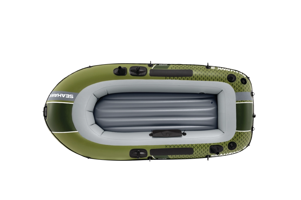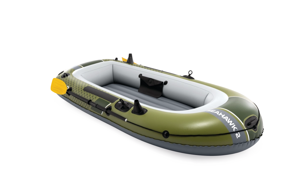 A zöld-szürke, vonzó dizájnú Seahawk 2 a stabilitást és a kényelmet ötvözi. A tartós PVC anyag ellenáll a szakadásoknak és a kopásnak, míg a három légkamra, beleértve a biztonsági belső kamrát, nyugodt haladást biztosít kedvezőtlenebb körülmények között is. A felfújható, I-bordás padló stabil és kényelmes érzetet nyújt üléskor és álláskor.