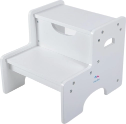 A praktikus, kétszintes gyerek fellépő segít a mindennapi otthoni teendőkben. A stabil fa szerkezetnek, a legfeljebb 70 kg teherbírásnak és az integrált fogantyúnak köszönhetően ideális a mosdóhoz, a konyhapulthoz vagy a polcok eléréséhez. Az időtálló fehér dizájn remekül illik a fürdőszobába, konyhába és a gyerekszobába is, és támogatja a gyerekek önállóságát és motorikus fejlődését.