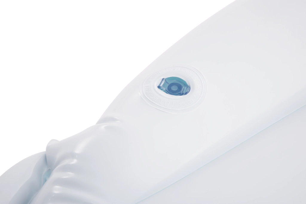 Praktikus szelep, amely megakadályozza a levegő kiszökését, és lehetővé teszi a gyors felfújást és leeresztést a fürdés előtt és után.