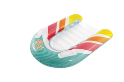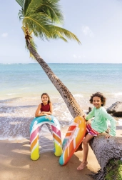 A Surf's Up Rider felfújható matrac kapaszkodókkal játékos, csíkos dizájnt kombinál egy átgondolt, kis csónakot idéző kialakítással. A két oldalsó kamra növeli a stabilitást, míg az integrált fogantyúk magabiztos fogást adnak a hullámokon való mókázáshoz. A tartós PVC anyag bírja a nyári terhelést és könnyen tisztítható.