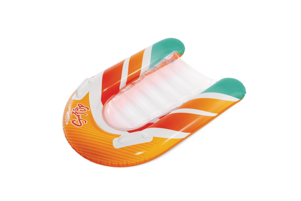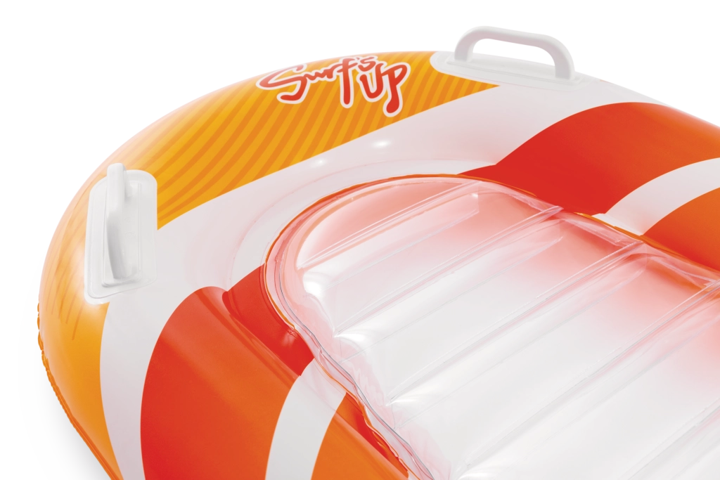 Élvezd a nyarat a vízen a Surf's Up Rider matraccal – könnyű, stabil, és 6 éves kortól gyermekeknek tervezve. Erős kapaszkodókkal, ergonomikus ülőrésszel és tartós PVC-vel kínál biztonságos és kényelmes játékot medencében, tóban vagy a tengernél. A átlátszó ülőfelületnek köszönhetően még szórakoztatóbb az úszás, míg a biztonsági szelepek bent tartják a levegőt, ahol annak lennie kell.