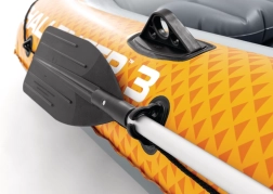 Az Intex Challenger 3 felfújható csónak ideális választás családi kirándulásokhoz és pihentető evezésekhez tavakon és nyugodt folyókon. A robusztus, erős PVC szerkezet és a három különálló légkamra (beleértve a fő törzs belső segédkamráját) magas szintű biztonságot nyújt. Az I-bordás felfújható padló stabilitást és kényelmet biztosít hosszabb vízen töltött idő esetén is.