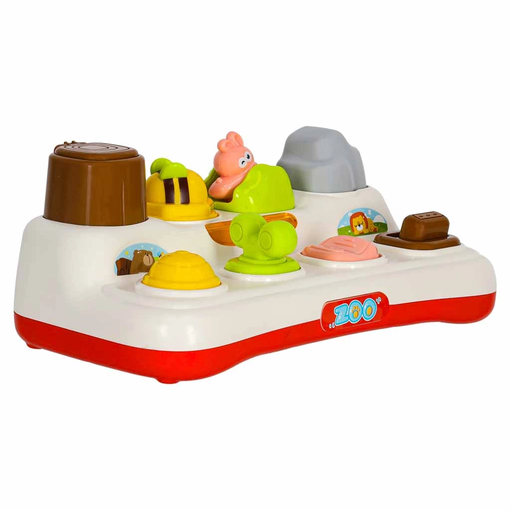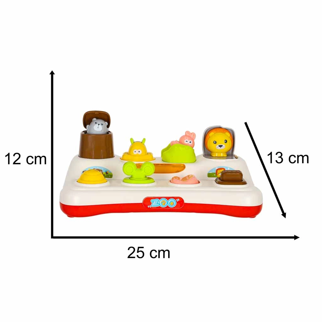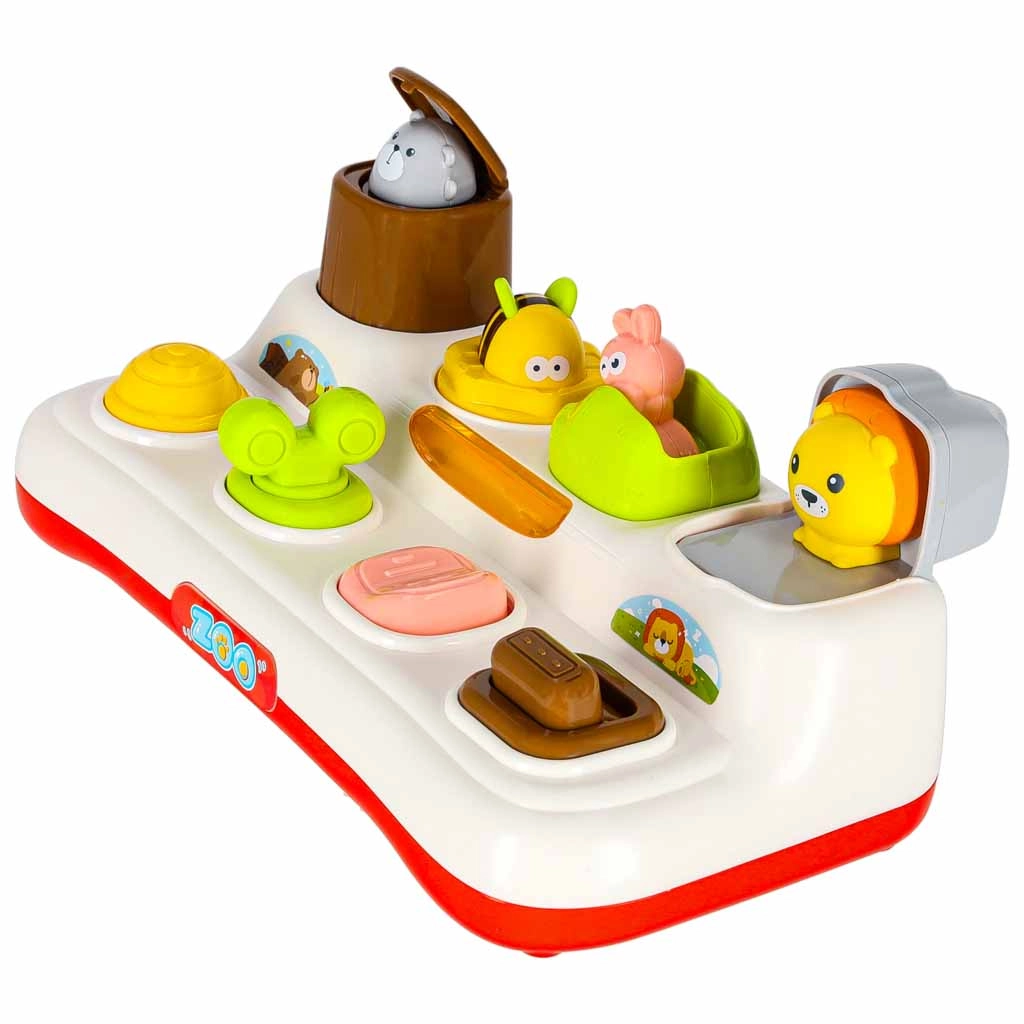 Fedezd fel a tanulás örömét ezzel az interaktív, felbukkanós játékkal 18 hónapos kortól. A gyermek megnyomja, eltolja vagy elfordítja a vezérlőelemeket, és az ablakokból színes állatkák bukkannak elő. A játék fejleszti a finommotorikát, a logikus gondolkodást és a ok-okozati összefüggések megértését. A fényhatások és a melódiák még vonzóbbá teszik a szórakozást, ugyanakkor a hang teljesen elnémítható.
