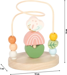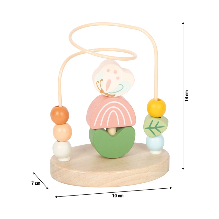 A small foot Rét motoros útvesztő örömteli felfedezést és tanulást kínál a gyerekeknek. A masszív fém hurok színes fa gyöngyökkel lehetővé teszi a sima tologatást, amely természetes módon támogatja a finommotorika és a pontos fogás fejlődését. Középen egy összerakható minijáték található hat faelemmel (méhecske, pillangó, 2 szirom, 2 levél), amely a koncentrációt és a logikus gondolkodást fejleszti.