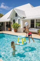 - Játék és célzástréning a medencében, családi szórakozás