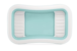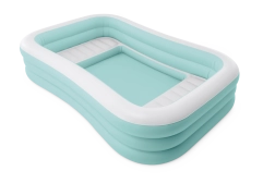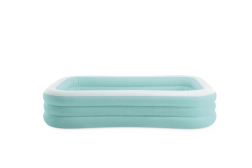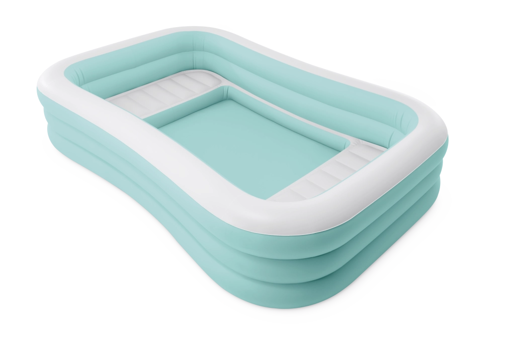 A Swim Center Family Lounge felfújható medence ideális családi pihenéshez a kertben vagy a teraszon. Téglalap alakja enyhén lekerekített sarkokkal, valamint a világoskék és fehér színkombináció friss és elegáns megjelenést ad. A három külön felfújható kamra szilárdságot, stabilitást és kényelmes oldalmagasságot biztosít, így a 6 éves kortól kezdve a gyerekek és a felnőttek is élvezhetik a pancsolást.