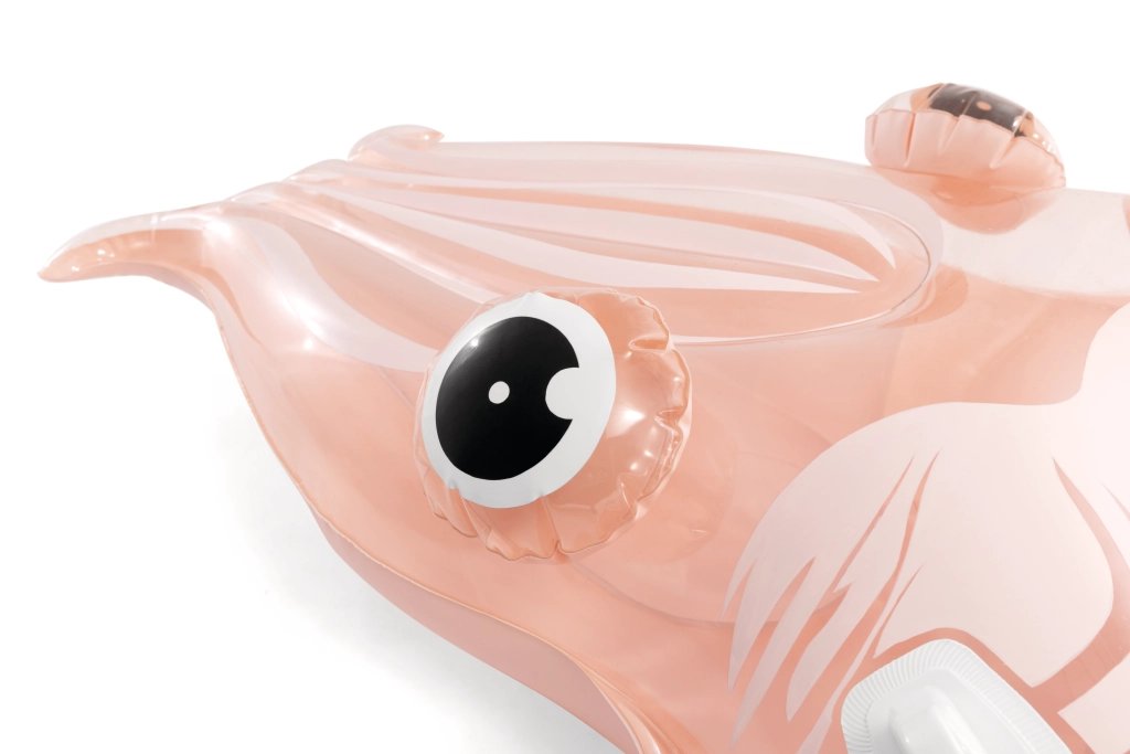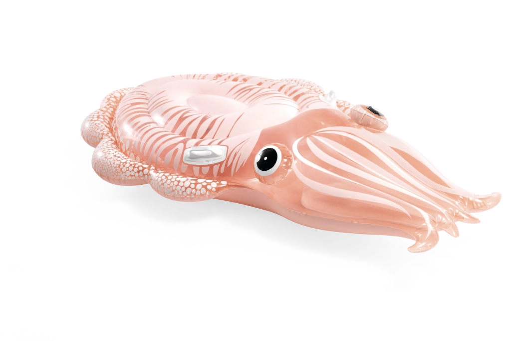 A polipos alakú felfújható matrac az egyedi megjelenést a praktikus funkciókkal ötvözi a biztonságos vízi szórakozás érdekében. Az átlátszó, rózsaszínes–narancs árnyalatú PVC és a polip testének markáns részletei rendkívül vonzó hatást keltenek, és remekül illenek a nyári hangulathoz medencénél és természetes vizeknél egyaránt.